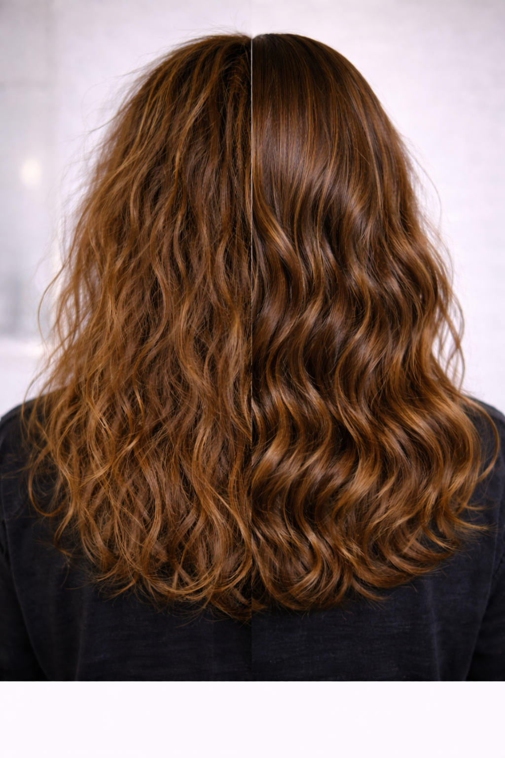 Permanente Glättung, Spiegelglanz, weniger Frizz, gut kämmbar, geschmeidige Haare, gepflegte Haare